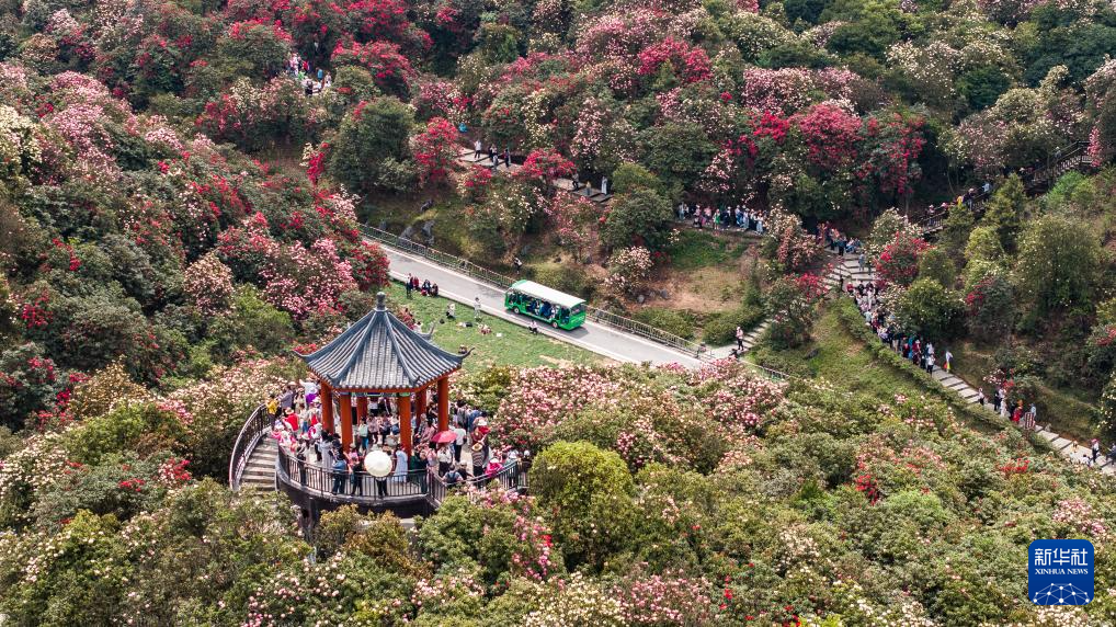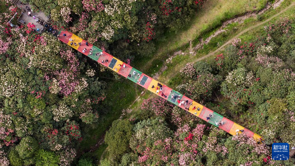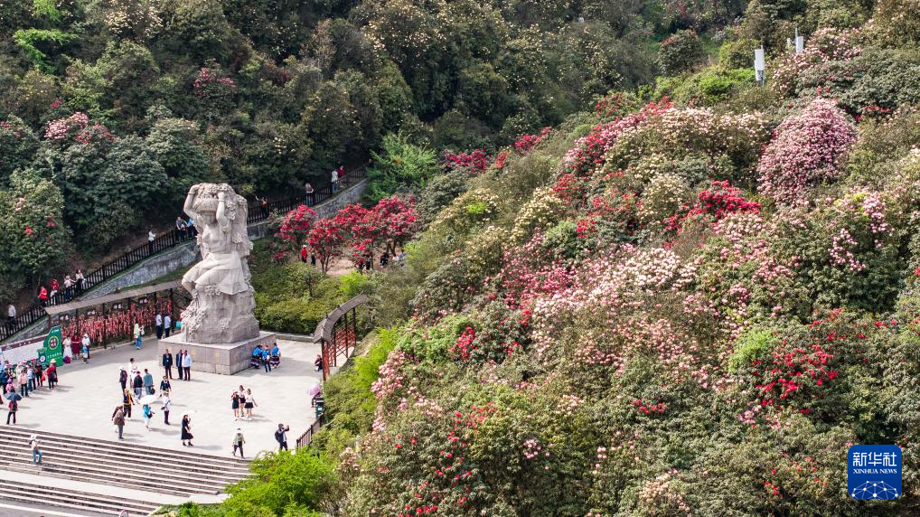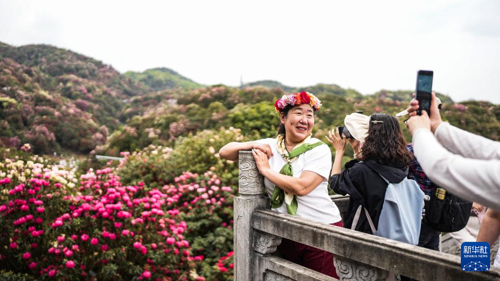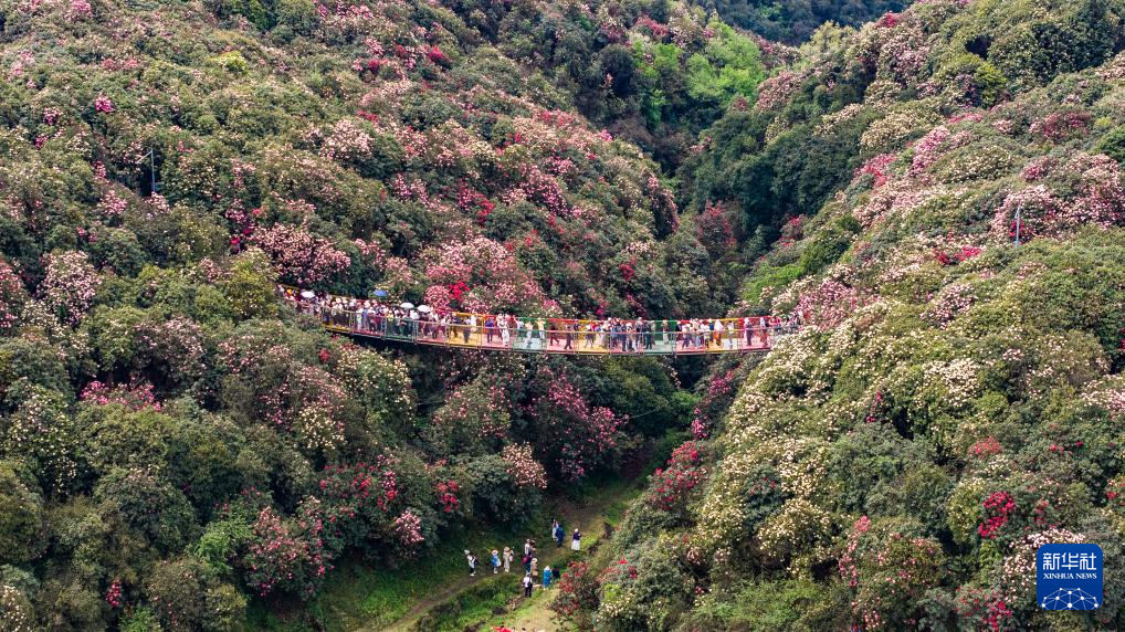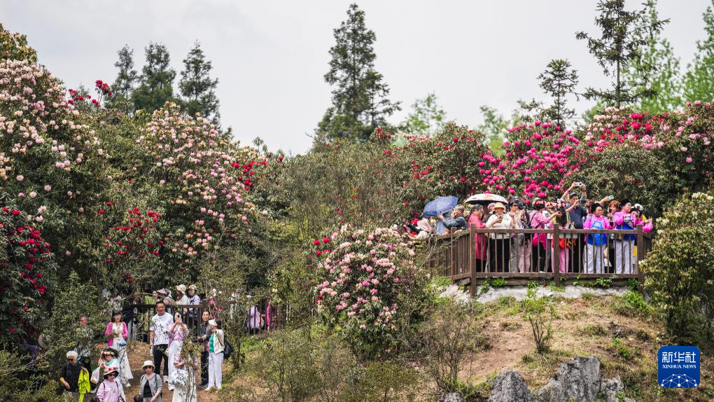 【新華社畢節4月19日】ツツジの名所として知られる中国貴州省畢節(ひっせつ)市の百里杜鵑風景区はこのほど、ツツジが満開となり、多くの花見客でにぎわっている。