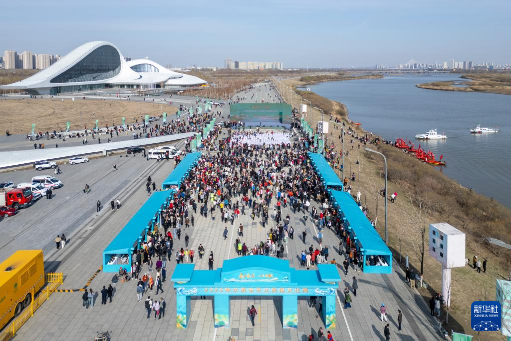 16日、川開き民俗文化ウイークの開幕式の会場。(ドローンから、ハルビン=新華社記者/張濤)