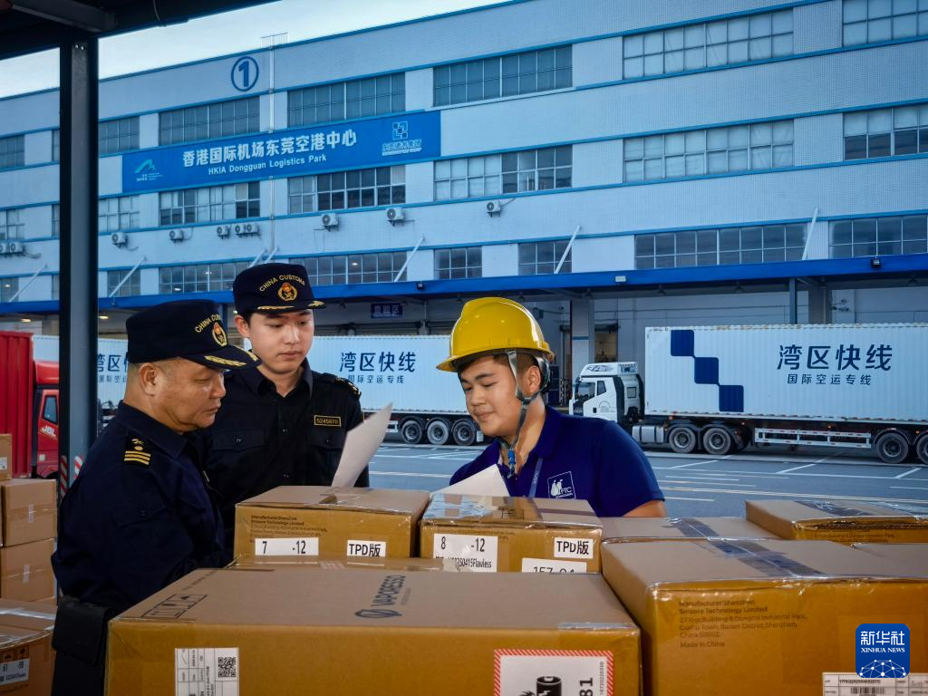 17日、東莞・香港国際空港センターで貨物検査を行う黄埔税関の職員。(広州=新華社配信)