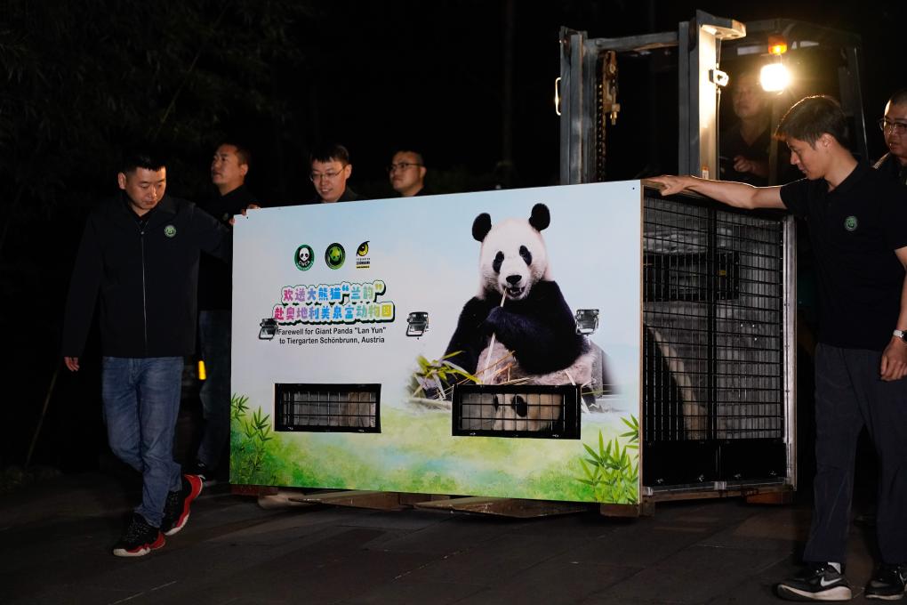 【新華社成都4月23日】中国がオーストリア・ウィーンのシェーンブルン動物園に貸与したジャイアントパンダの「荷風(ホーフォン)」と「蘭韻(ランイン)」が23日、チャーター機でオーストリアに出発した。貸与期間10年で、同動物園で飼育される。