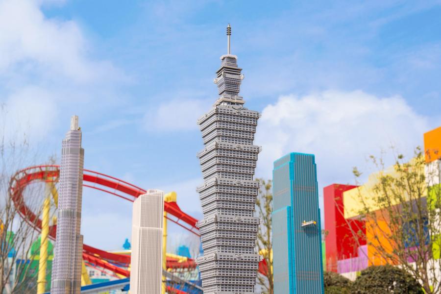 「レゴランド・クリエーティブワールド」エリアにあるレゴの街の一角。(上海=新華社配信)