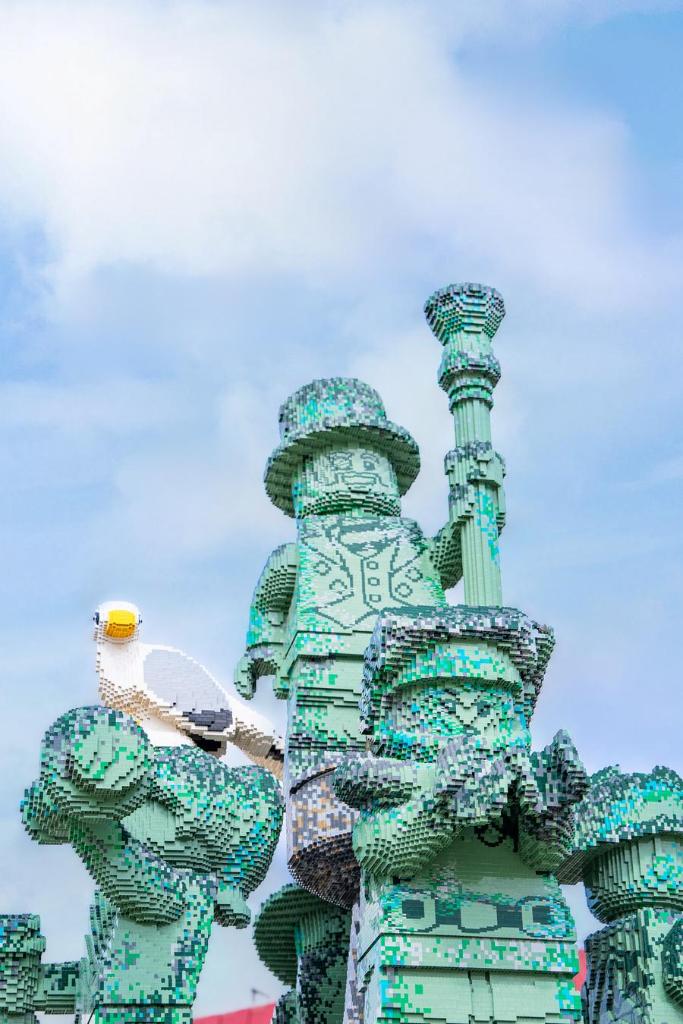 「レゴ・モンキーキッド」エリアにあるアニメ「モンキーキッド」のメインキャラクターをかたどったレゴ作品。(上海=新華社配信)