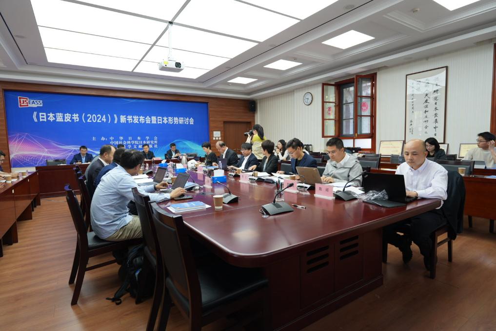 29日、「日本青書(2024)」新刊発表会と日本情勢をめぐるシンポジウムに出席した専門家・学者。 (北京=新華社記者/許芸潁)