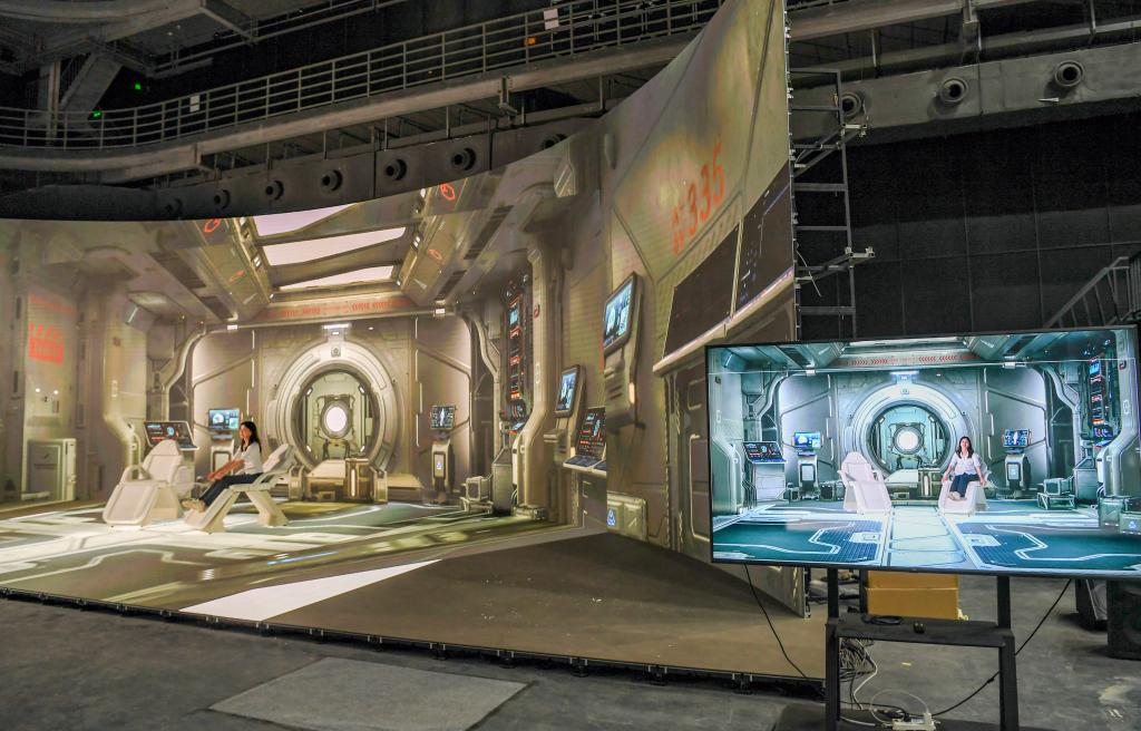 永川テクノロジー撮影スタジオでバーチャル撮影技術を体験する来場者。(重慶=新華社記者/王全超)