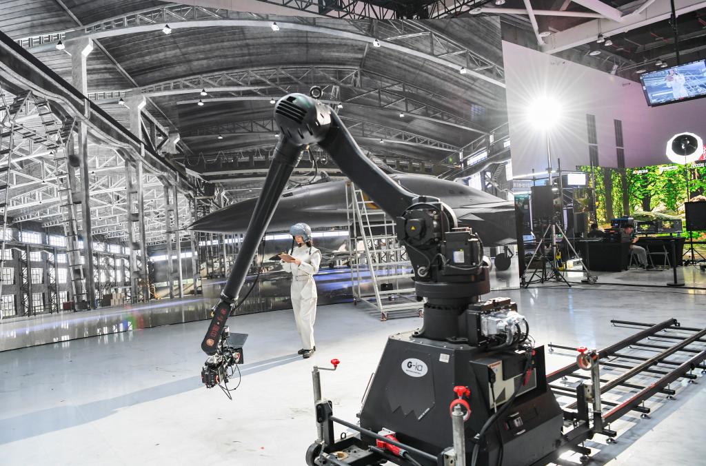永川国際エキシビション・コンベンションセンターで行われたバーチャル撮影技術の展示。(重慶=新華社記者/王全超)