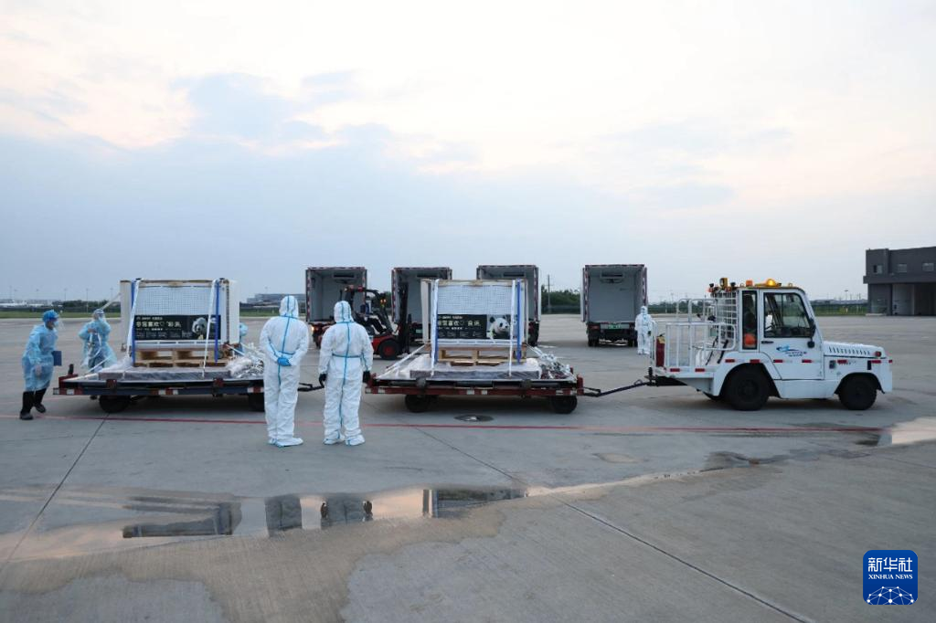 【新華社成都6月30日】和歌山県白浜町のレジャー施設「アドベンチャーワールド」で飼育されてきたジャイアントパンダ4頭が28日午後7時ごろ、チャーター機で中国四川省の成都双流国際空港に到着した。4頭は「良浜(らうひん)」「結浜(ゆいひん)」「彩浜(さいひん)」「楓浜(ふうひん)」。成都ジャイアントパンダ繁殖研究基地に移送後、隔離検疫を受けている。