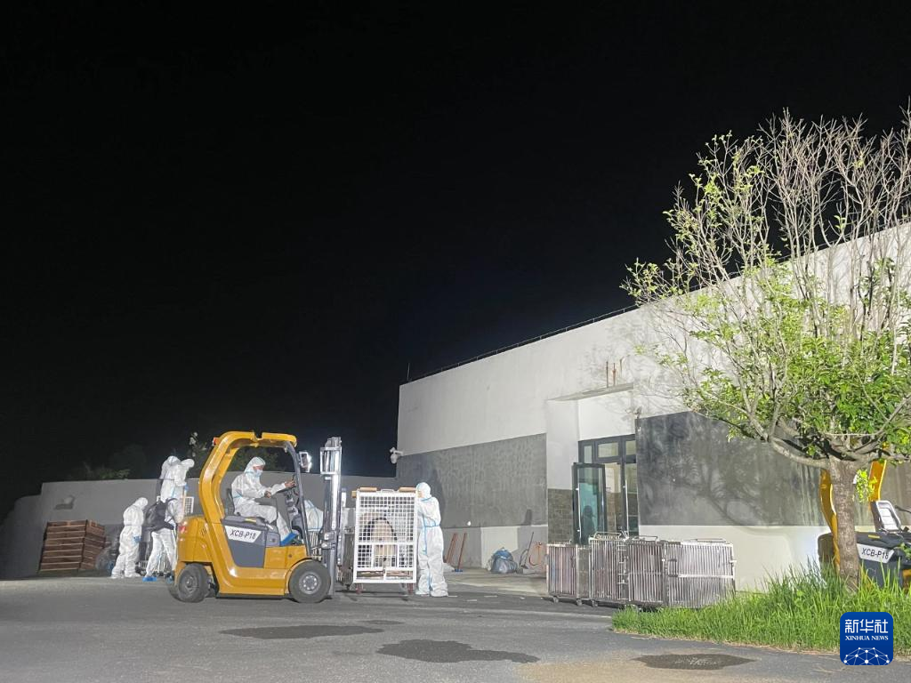 28日夜、パンダ4頭が到着した成都ジャイアントパンダ繁殖研究基地。(成都=新華社配信)