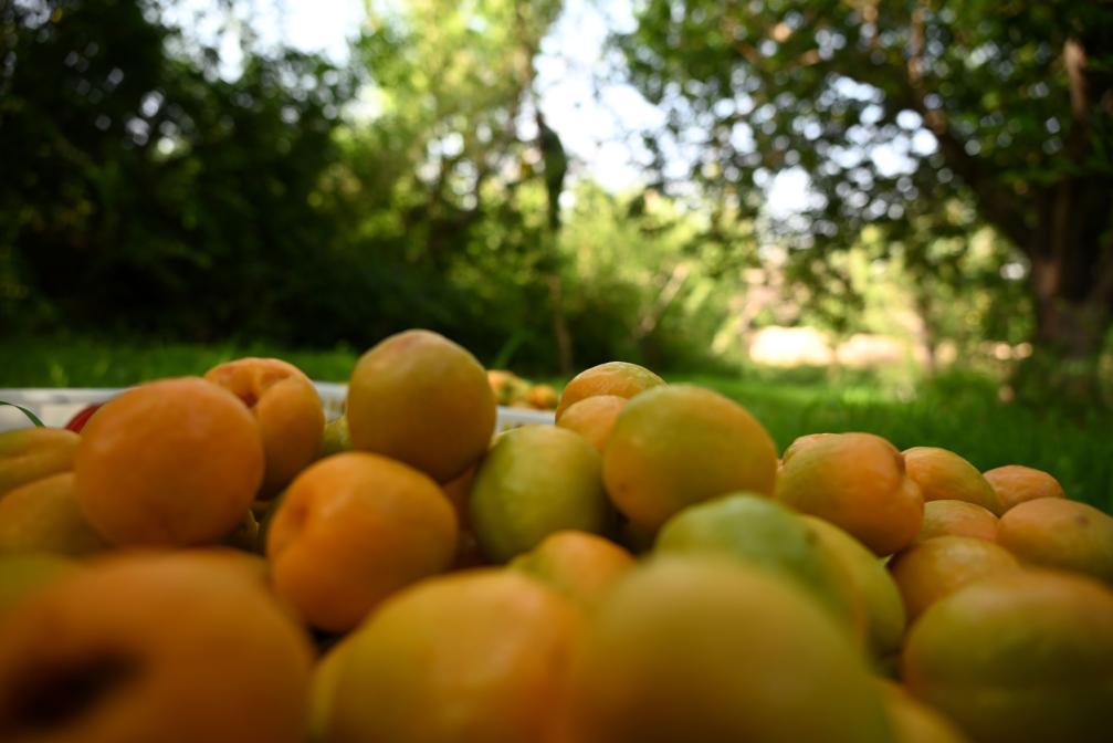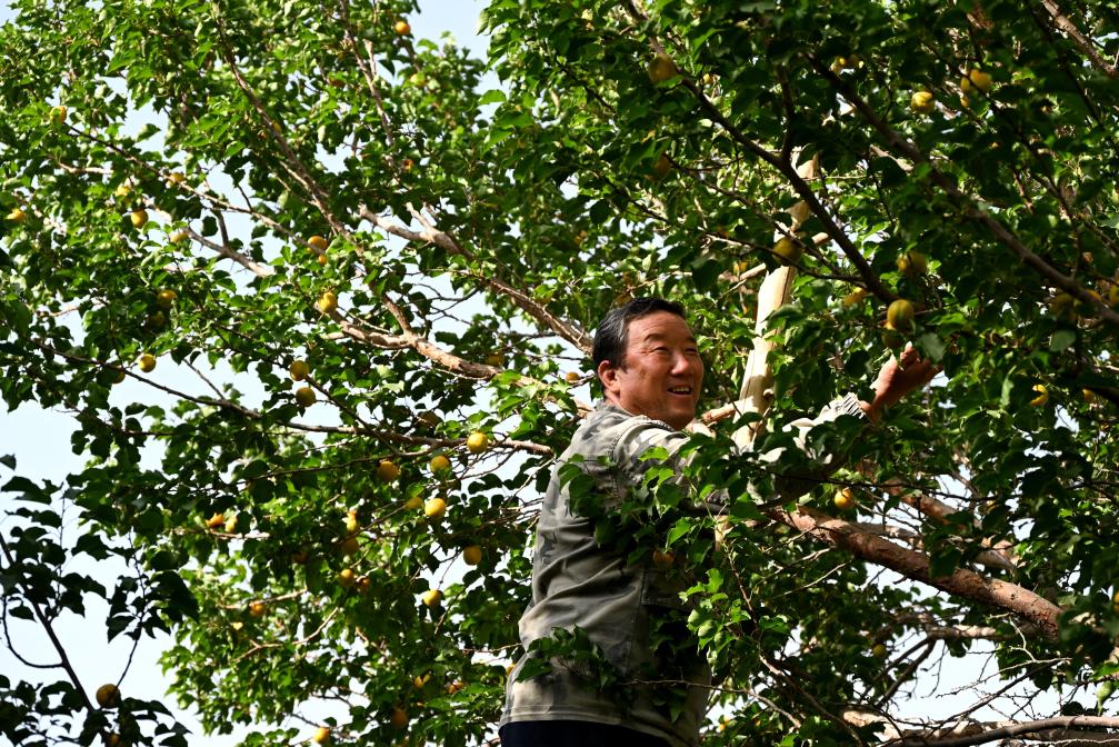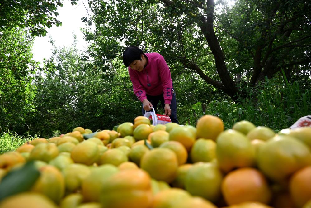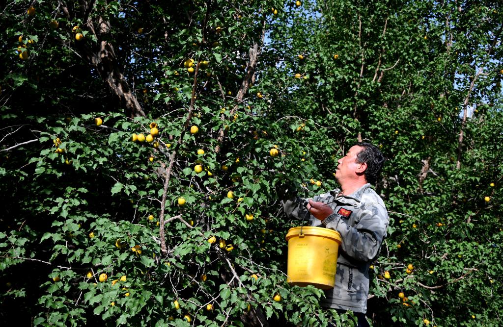 6日、甘粛省敦煌市月牙泉鎮合水村で収穫された李広杏。(敦煌=新華社配信/張暁亮)