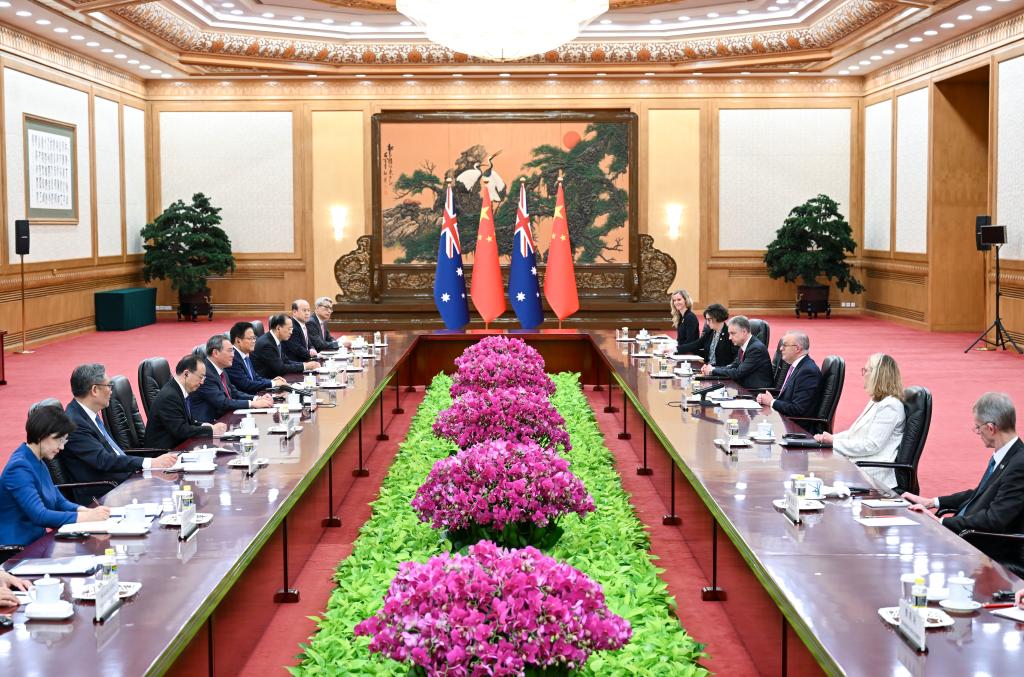 中国の李強(り・きょう)国務院総理は15日午後、中国を公式訪問したオーストラリアのアルバニージー首相と北京の人民大会堂で第10回中豪首相年次対話を行った。(北京=新華社記者/張領)