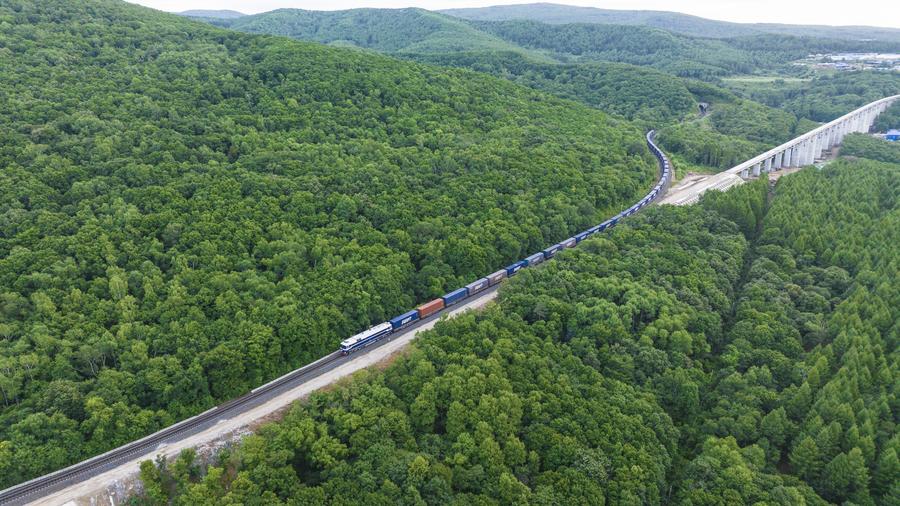 「中欧班列」東ルートは、内モンゴル自治区の満洲里、黒竜江省の綏芬河と同江の鉄道口岸で構成される。現在は27路線が運行し、湖南省長沙や河南省鄭州、四川省成都など国内60以上の都市とポーランド、ドイツ、オランダなど14カ国を結ぶ。輸送する貨物は電子製品や軽工業製品・織物・日用品、食糧・大豆油など12品目にわたっている。(記者/徐凱鑫、劉赫垚)