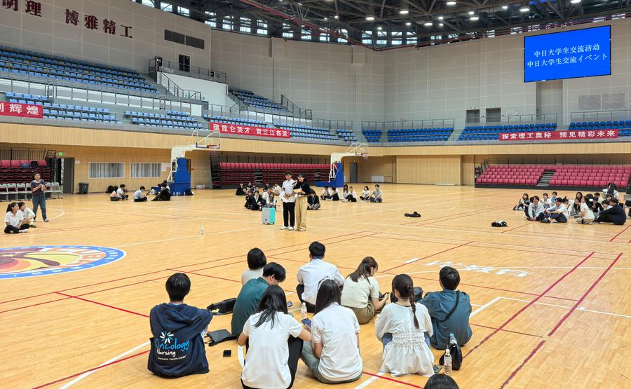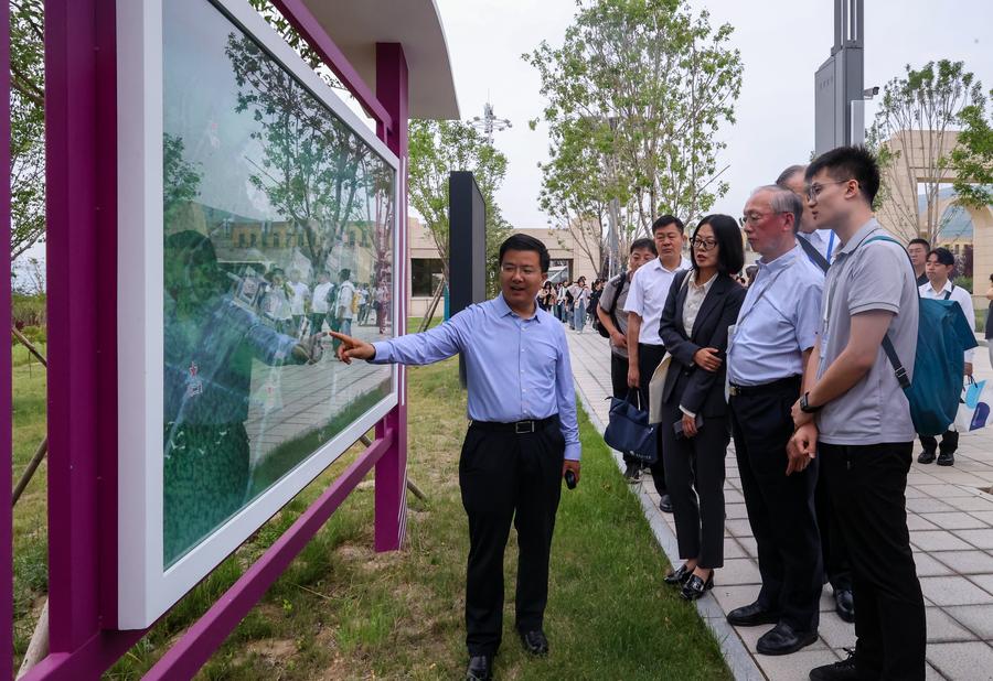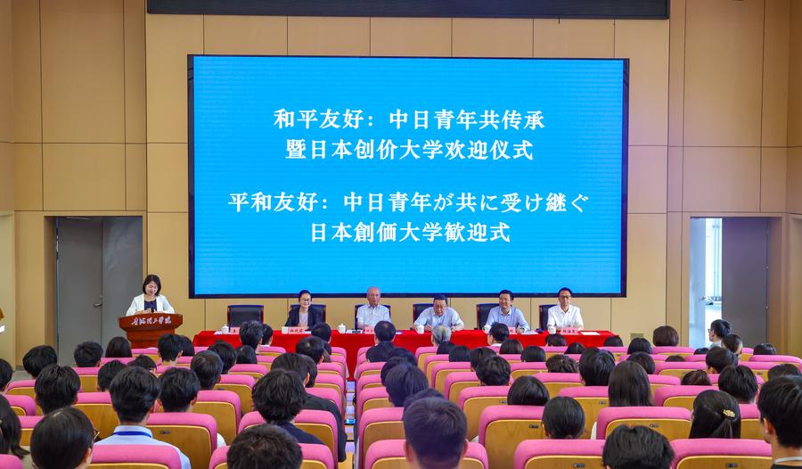 2日、青海理工学院を訪れた創価大代表団。(西寧=新華社配信/楊暁冬)