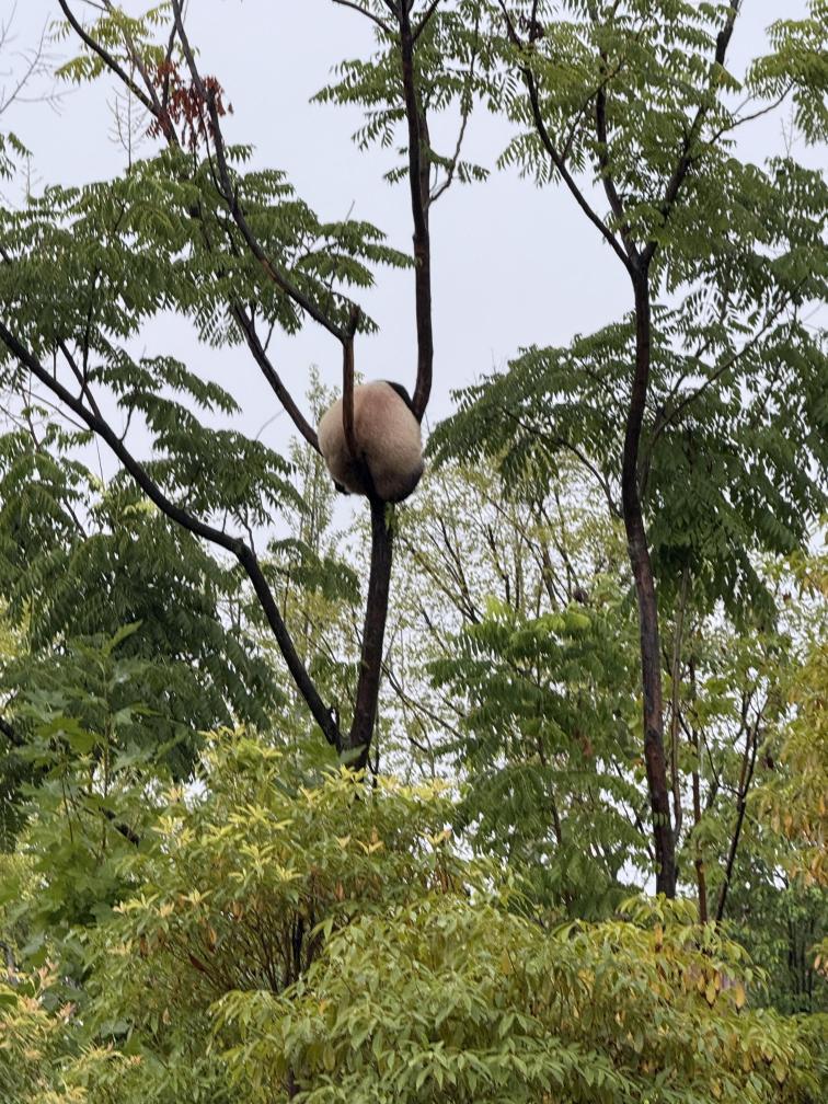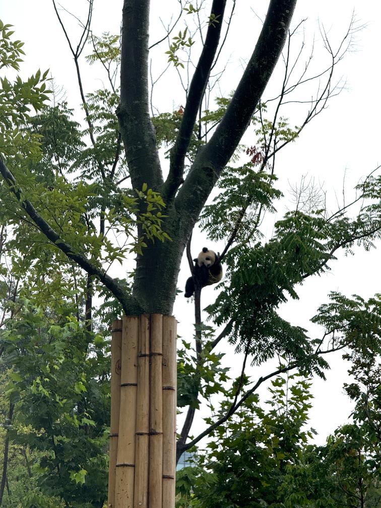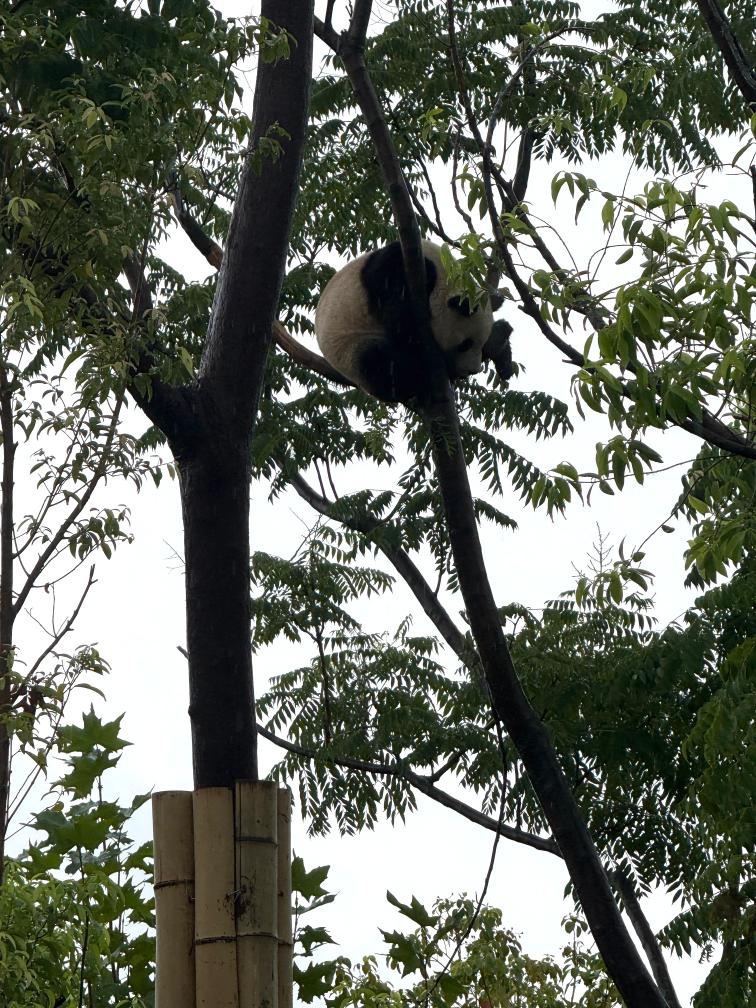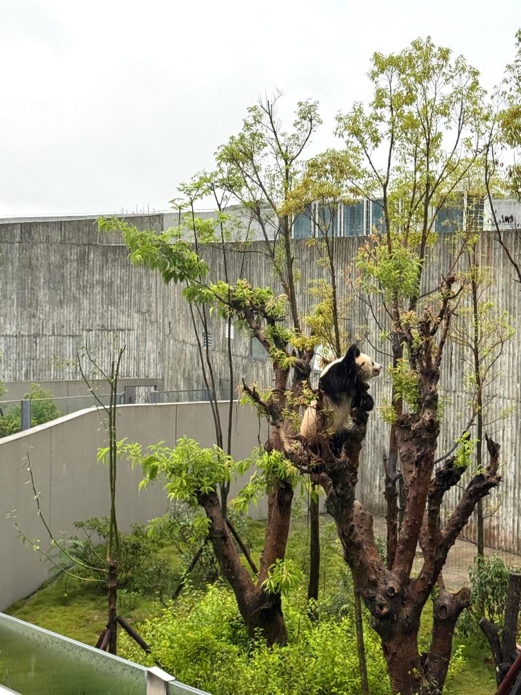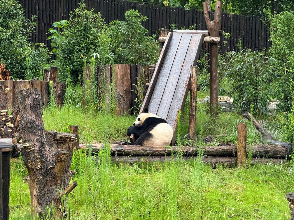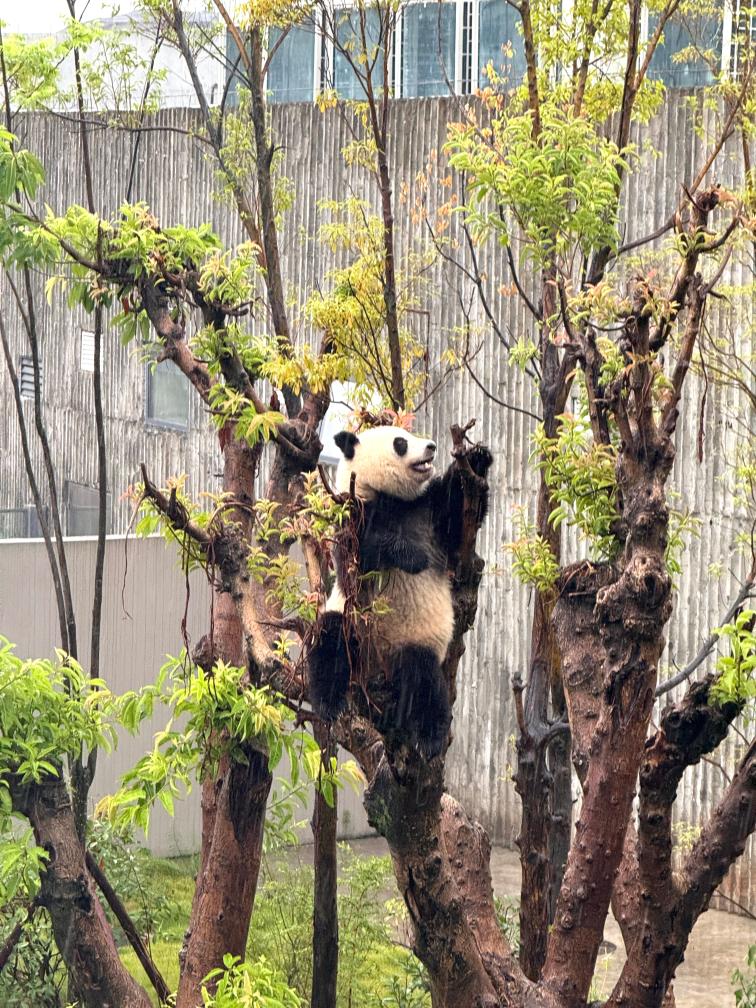 10日、雨の中のパンダ。(成都=新華社記者/許芸潁)