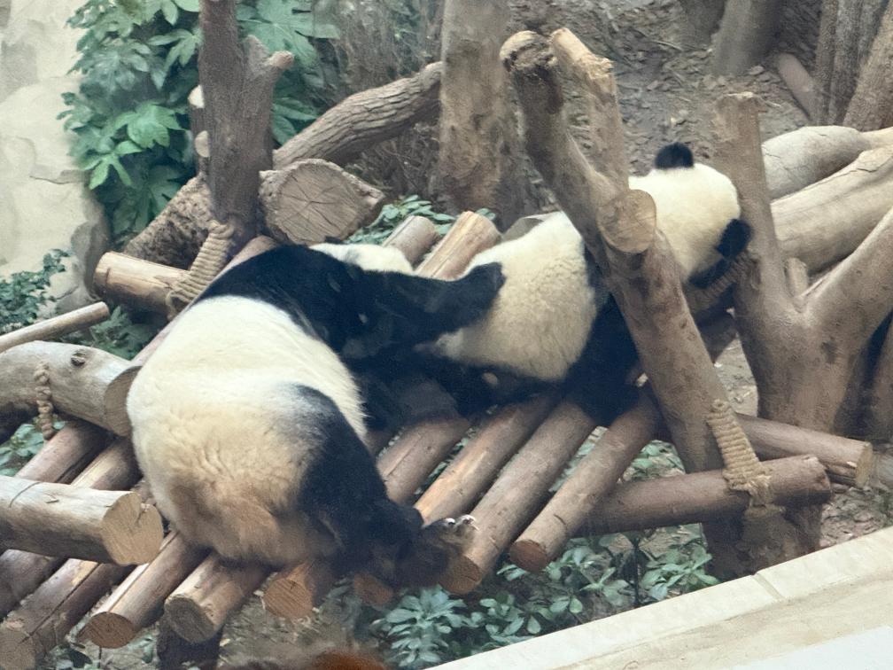 【新華社成都8月12日】中国四川省にある成都ジャイアントパンダ繁殖研究基地では10日、折からの大雨にもかかわらず、多くの観光客が訪れにぎわいを見せた。世界各地からの観光客が雨の中、パンダの姿を一目見ようと来訪。中には、開催中のワールドゲームズ成都大会に参加したベルギーの選手たちや、成都を訪れた日本人観光客の姿もあり、色とりどりの傘が基地内に独特の景観を呈していた。