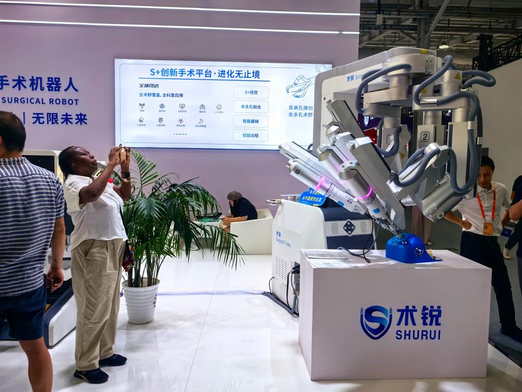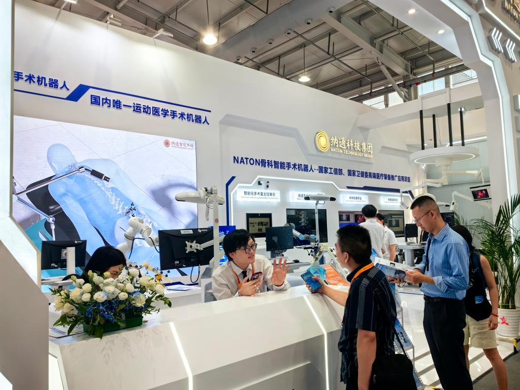 【新華社北京9月14日】中国北京市で10~14日、「2025年中国国際サービス貿易交易会」が開かれた。今年のテーマは「デジタル・スマートの先導、サービス貿易の刷新」で、中でも健康衛生テーマ展で紹介されたデジタル・スマート医療や手術ロボット技術は、同展のハイライトの一つとなり、多くの人の注目を集めた。