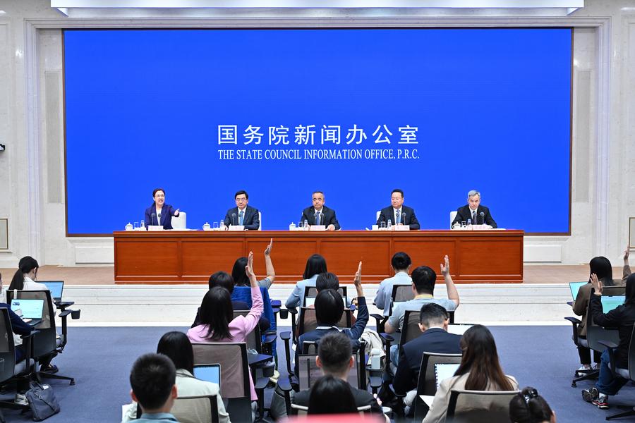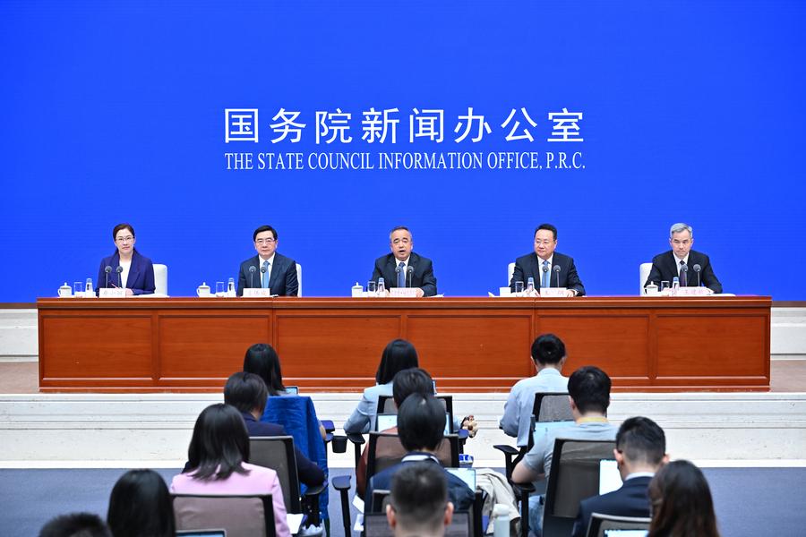 19日、北京で開かれた「新時代における中国共産党の新疆統治方針の成功実践」白書に関する記者会見。(北京=新華社記者/李鑫)