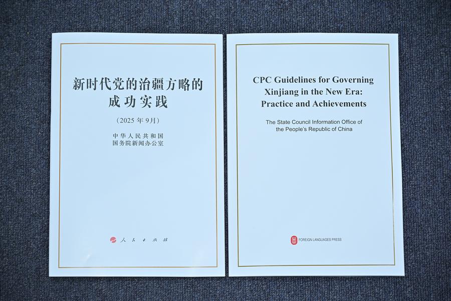 19日に発表された白書「新時代における中国共産党の新疆統治方針の成功実践」。(北京=新華社記者/李鑫)