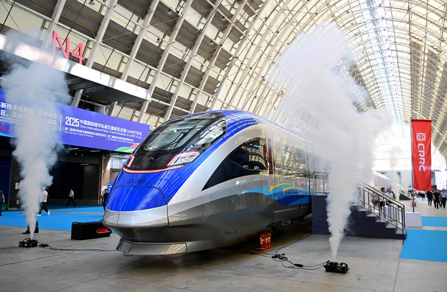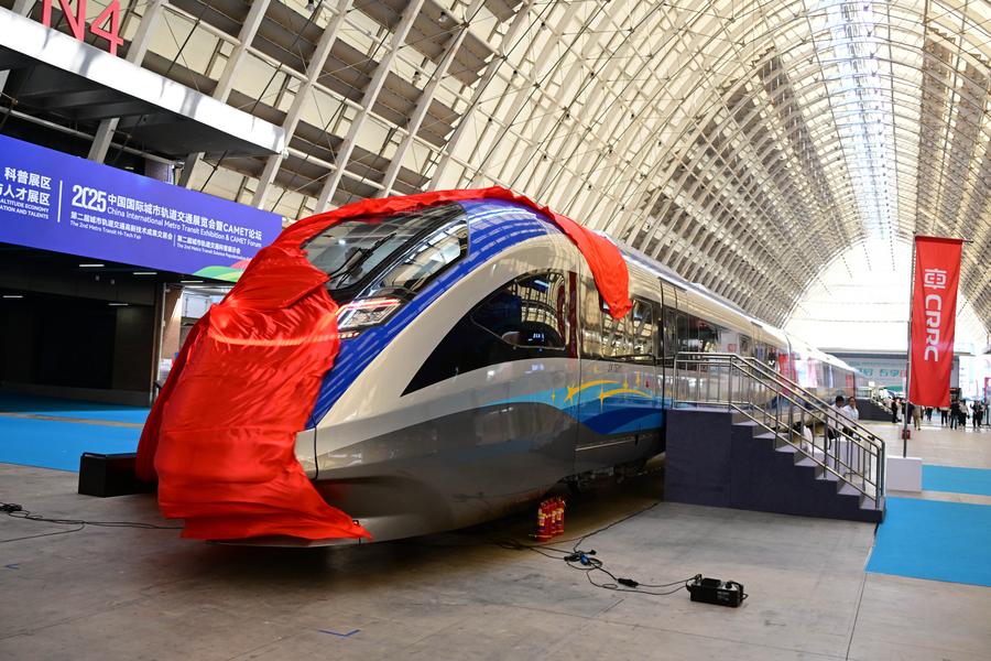 【新華社青島9月21日】中国の鉄道車両製造大手、中国中車が独自に開発し、知的財産権を持つ都市間鉄道スマート列車が18日、山東省青島市で披露された。