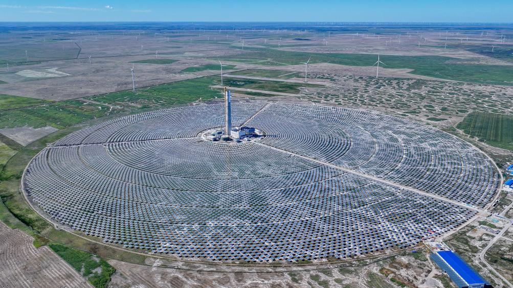 吉林省大安市にある魯固直流100メガワット溶融塩タワー式太陽熱発電所。(長春=新華社配信)
