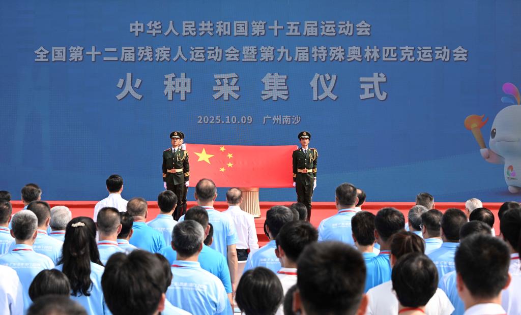 【新華社広州10月9日】中国広東省広州市で9日、第15回全国運動会、第12回全国障害者スポーツ大会及び第9回スペシャル・オリンピックスの聖火の採火式が行われた。