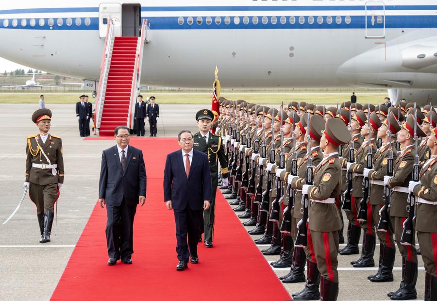 【新華社平壌10月9日】中国の李強(り・きょう)共産党中央政治局常務委員・国務院総理は9日、党・政府代表団を率いてチャーター機で朝鮮の首都平壌に到着した。朝鮮労働党中央委員会と朝鮮政府の招きで、朝鮮労働党創立80周年祝賀行事に出席し、同国を公式友好訪問する。