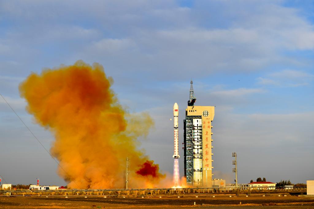 13日、酒泉衛星発射センターから打ち上げられた運搬ロケット「長征2号D」。(酒泉=新華社配信/汪江波)
