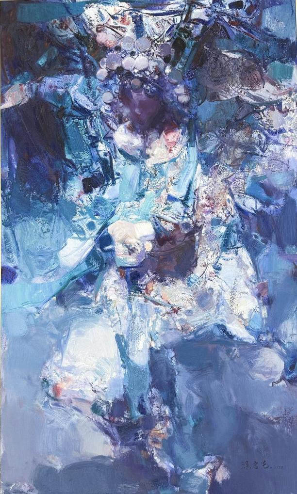 展示作品の油絵。(天津=新華社記者/周潤健)