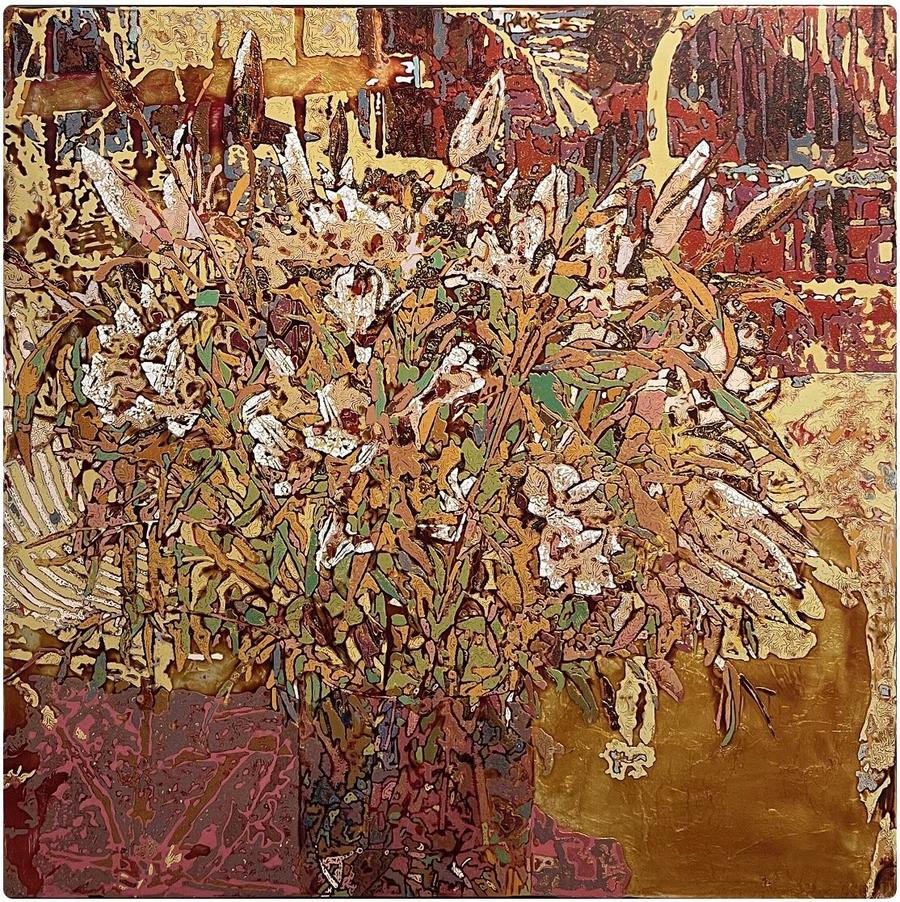 展示作品の漆画。(天津=新華社記者/周潤健)