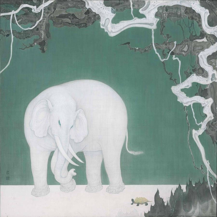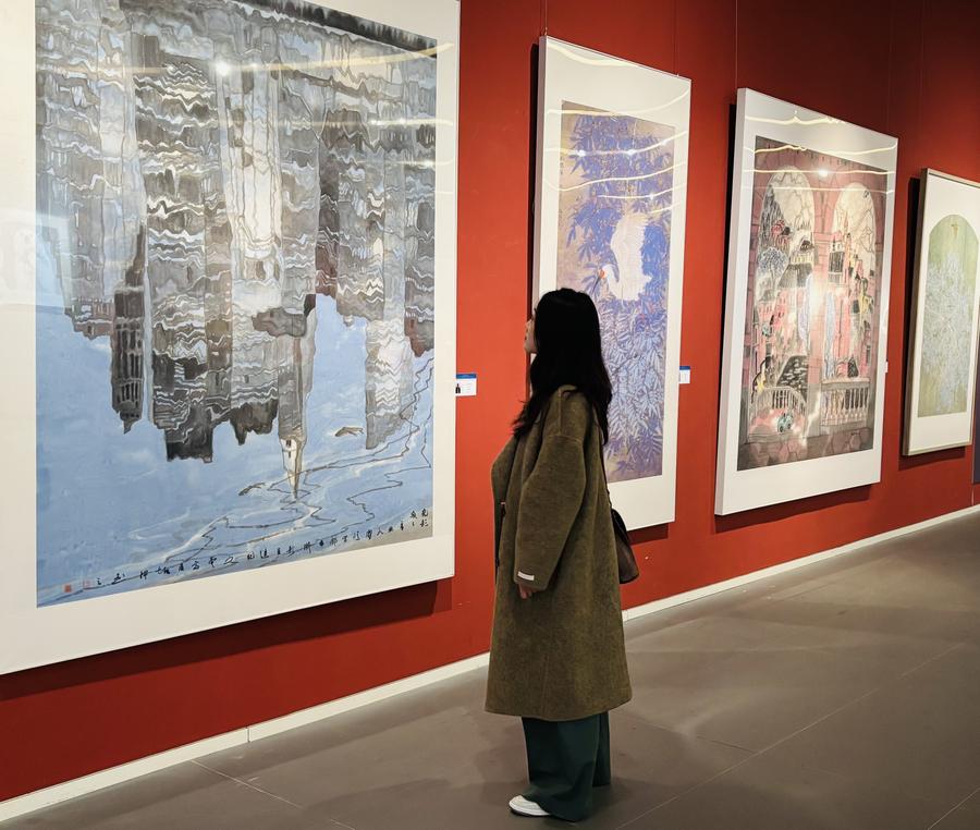 展示作品の中国画。(天津=新華社記者/周潤健)