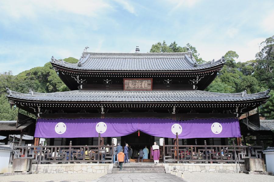 4日、第2回隠元禅師大茶会で、隠元禅師誕辰法会が営まれた万福寺の開山堂。(宇治=新華社記者/岳晨星)