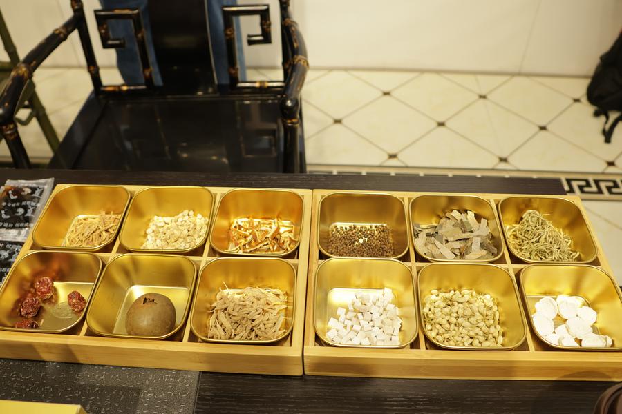 5日、上海中医薬大学付属岳陽医院が手がける特色ある中医薬ブランド「岳陽膏方(こうほう)」で使用される原料。(上海=新華社記者/藍建中)