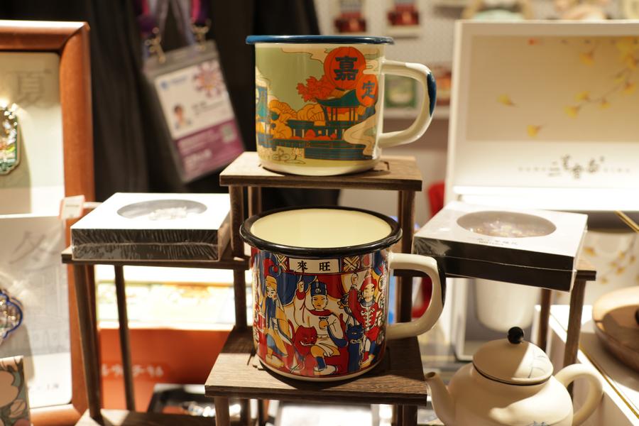5日、八分園(嘉定区)で生産されたほうろう製マグカップ。制作技法は区の無形文化遺産に登録されている。(上海=新華社記者/藍建中)