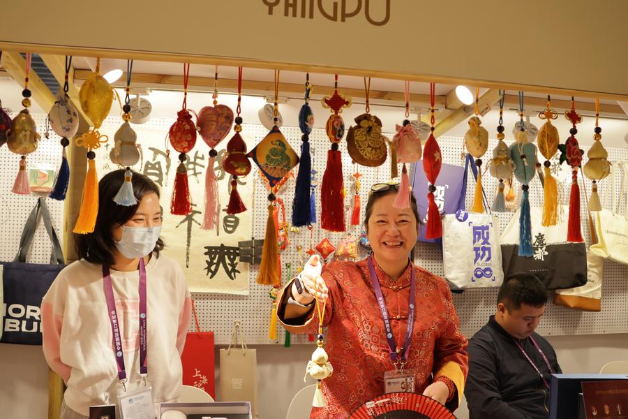 5日、上海無形文化遺産ラウンジを見学する来場者。(上海=新華社記者/藍建中)
