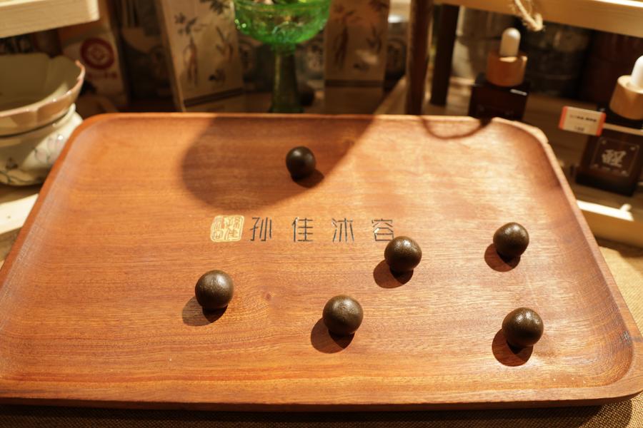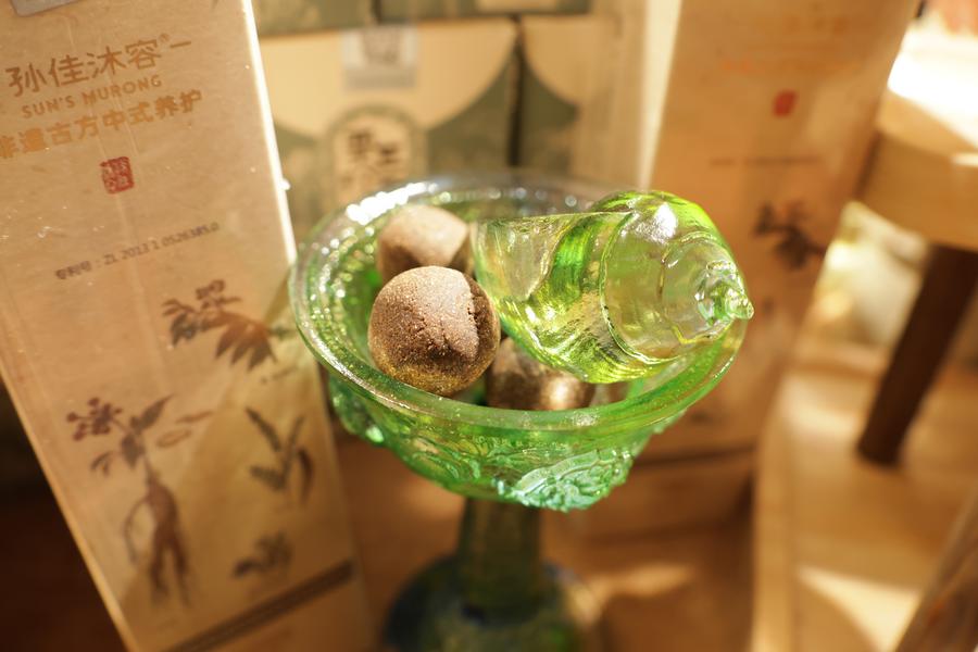 5日、虹口区の無形文化遺産「孫佳沐容の澡豆」。澡豆は粉末状の洗顔料。(上海=新華社記者/藍建中)