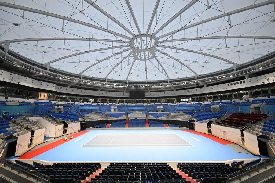 第15回全国運動会でテニスの会場となる広東省珠海市の珠海横琴国際テニスセンター。(10月18日撮影、珠海=新華社記者/鄧華)