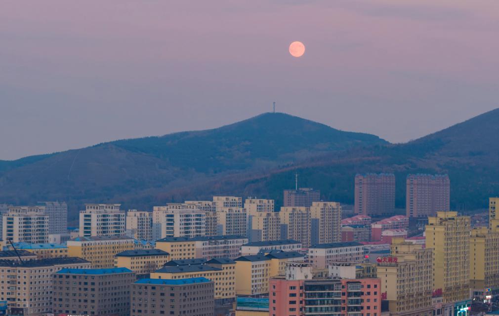 5日、内モンゴル自治区ヒンガン盟アルシャン市で輝く満月。(アルシャン=新華社記者/費茂華)