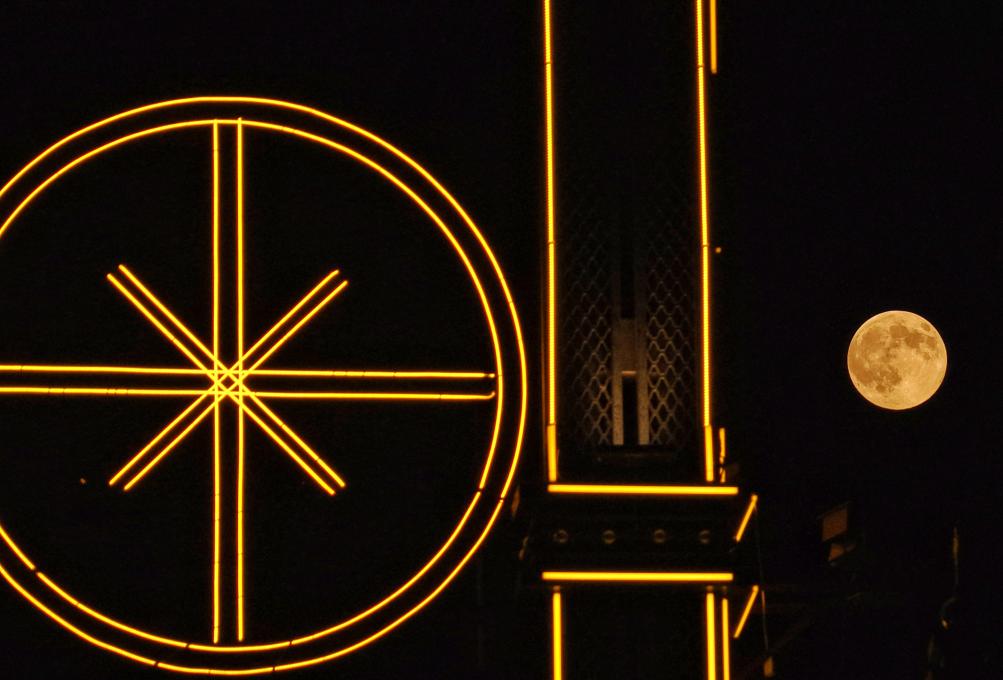 5日、黒竜江省チチハル市の空に輝く満月。(チチハル=新華社配信/王勇剛)