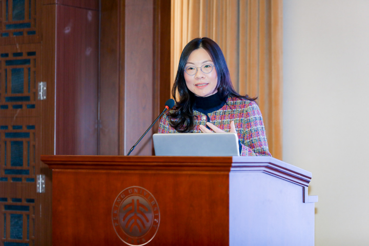 8日、テーマ報告を行う復旦大学の楊暁敏(よう・ぎょうびん)副教授。(北京=新華社配信)