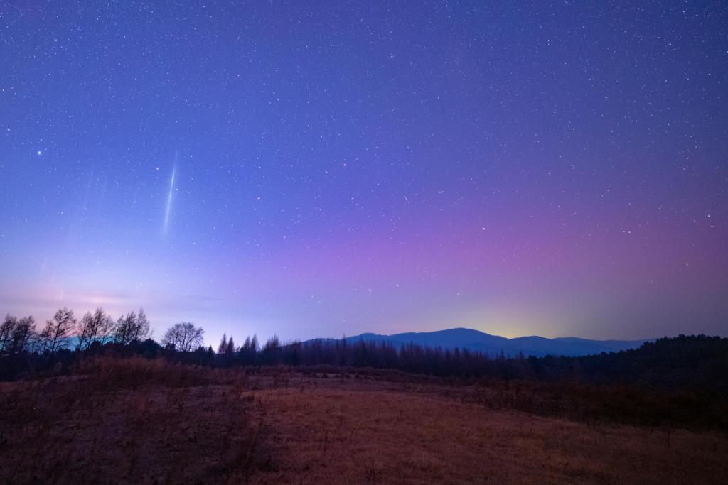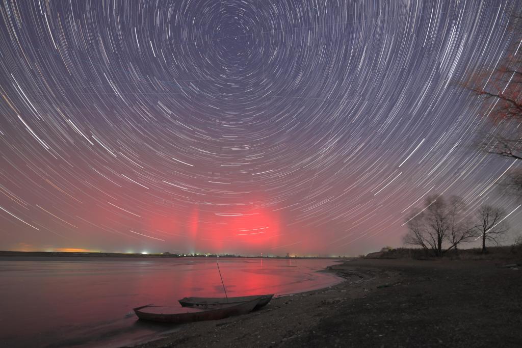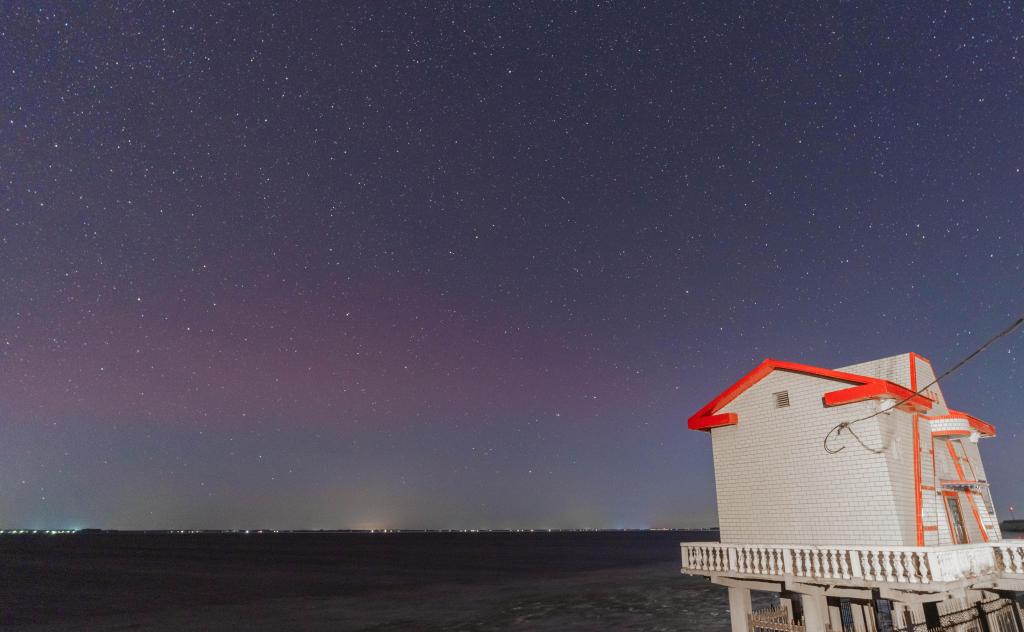 12日、黒竜江省富錦市で撮影したオーロラ。(富錦=新華社配信/曲玉宝)