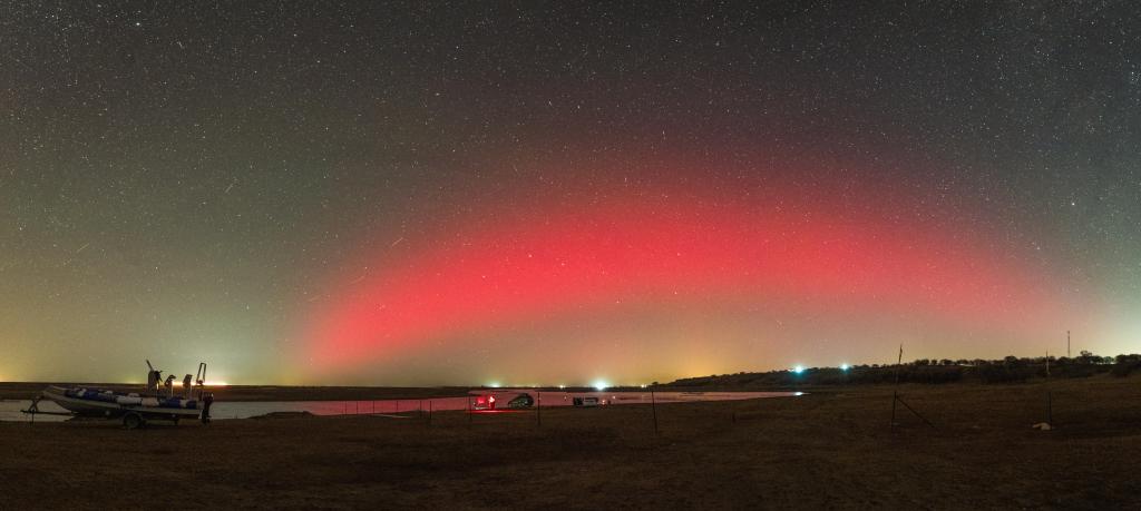 12日、黒竜江省大慶市で撮影したオーロラ。(パノラマ写真、大慶=新華社配信/劉崴)