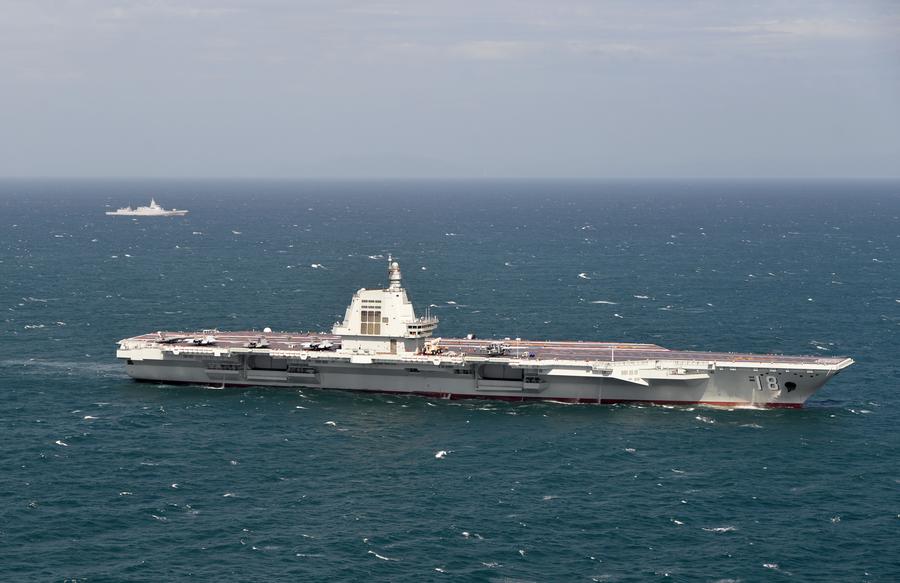 艦隊は福建とミサイル駆逐艦「延安」、護衛艦「通遼」など複数の艦艇で構成され、任務期間中に艦隊航行、共同捜索・救助、艦載機の発着艦などの訓練を相次いで行った。(三亜=新華社記者/李剛)
