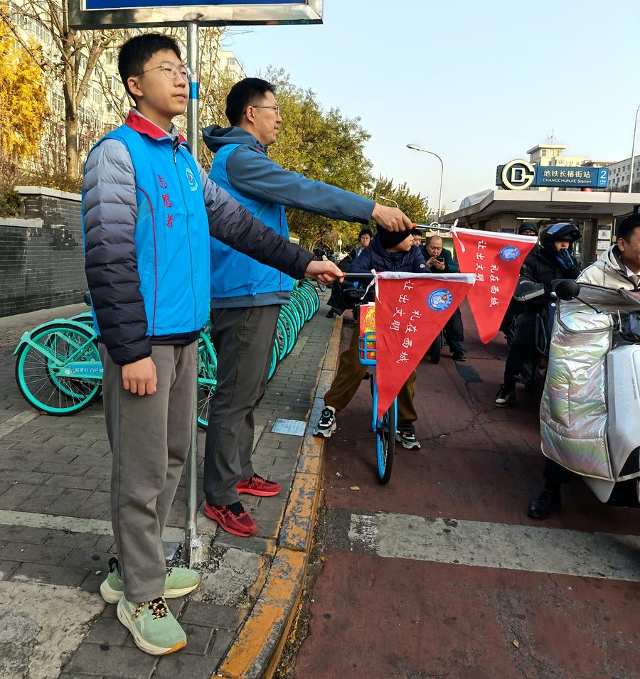 【新華社北京11月25日】北京市西城区のボランティア団体「安北網志願服務隊」は23日、同区長椿街で交通誘導や道案内、シェアサイクルの整理などの奉仕活動を行った。ボランティアたちの真剣な姿勢に、通りかかった市民も称賛を送っていた。
