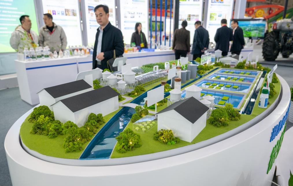 29日、農業博覧会で展示されている微生物を利用した産業の事例。(武漢=新華社記者/杜子璇)