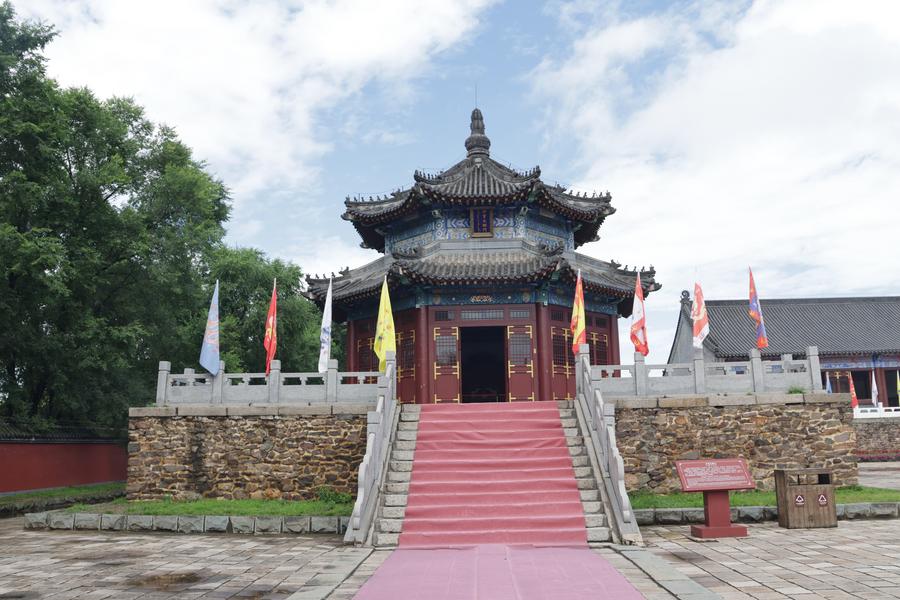 ヘトゥアラ城汗宮大衙門の後ろに立つシャーマン神殿。(7月4日撮影、撫順=新華社記者/藍建中)