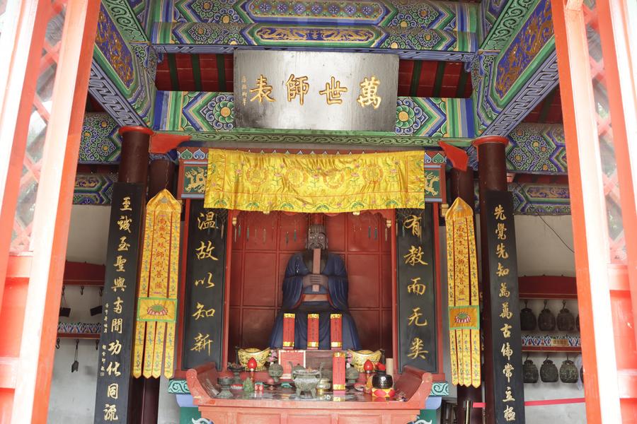 ヘトゥアラ城大成殿内の孔子像。(7月4日撮影、撫順=新華社記者/藍建中)