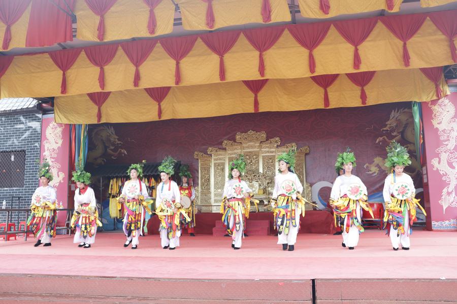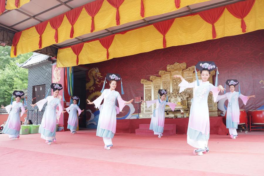 ヘトゥアラ城で披露された満族の祭祀(さいし)舞踊。(7月4日撮影、撫順=新華社記者/藍建中)