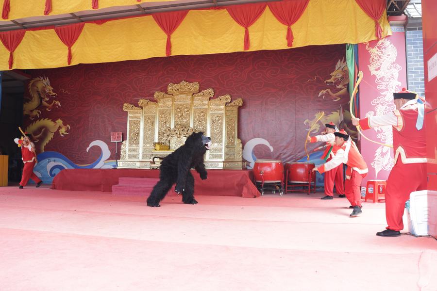 ヘトゥアラ城で披露された満族の狩猟パフォーマンス。(7月4日撮影、撫順=新華社記者/藍建中)