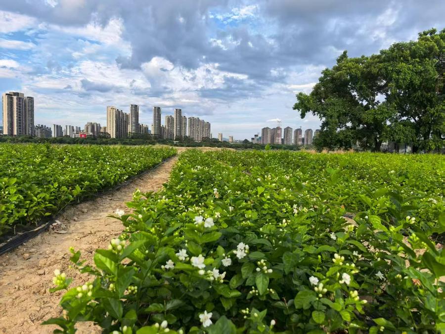 福州市閩榕茶業のジャスミン花栽培拠点。(福州=新華社配信)