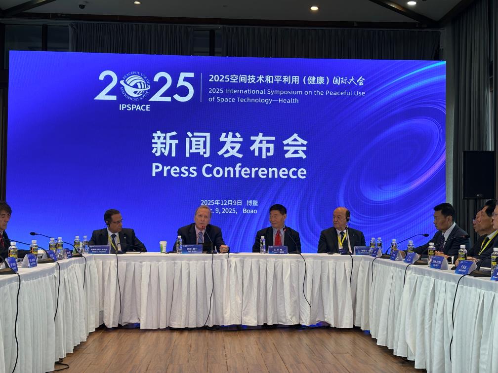 9日、「2025宇宙技術平和利用(健康)国際シンポジウム」の記者会見。(瓊海=新華社記者/陳子薇)
