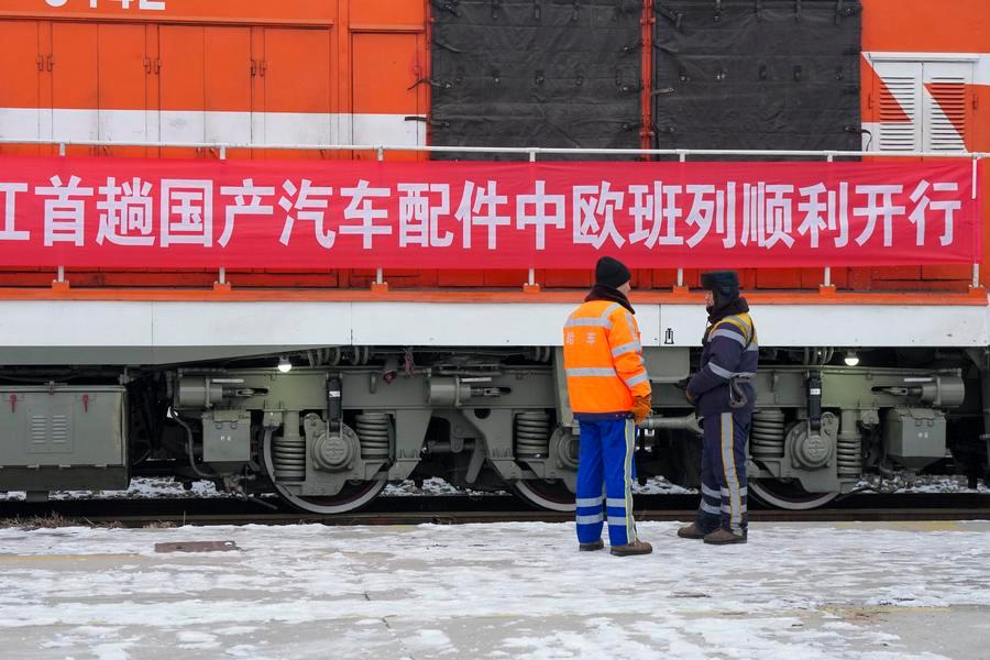 【新華社ハルビン12月20日】中国黒竜江省の鉄道を管理・運営する中国鉄路ハルビン局集団は18日、国産自動車部品を積んだ中欧班列(中国と欧州を結ぶ国際定期貨物列車)を今年初めて運行した。コンテナ55個で編成された列車は同省のハルビン国際コンテナセンター駅を出発し、内モンゴル自治区の満洲里口岸(通関地)を経て欧州へ向かう。