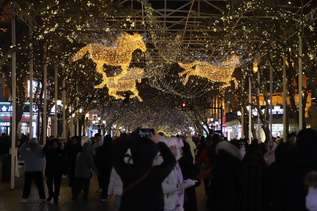 今冬のイルミネーションは、プログラム制御を通じてよりダイナミックな光の動きを演出。地域文化や中国の伝統文化、現代科学技術が織りなす光の世界を作り出している。今年はテーマ展示6カ所とサプライズポップアップ展示10カ所を順次公開し、15日夜に全展示が点灯した。(記者/孫暁宇)